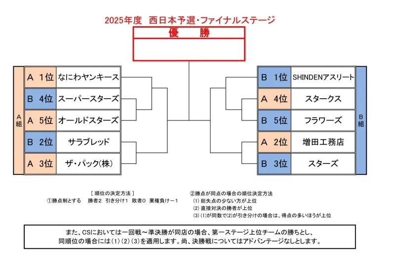 TOPIX 2025年02月25日(火) 10:00 2025年度 西日本予選ファイナルステージ 2025年度 西日本予選リーグ戦ファーストステージが終了しファイナルステージの組み合わせが決まりました。 前へ次へ一覧へ